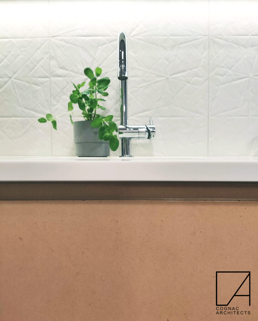 Chwilowo jedyne zdjęcie łazienki nr 2 jakie posiadamy, mam nadzieję, że nadrobimy braki niedługo! Bardzo dużą przyjemność mi sprawiło zaprojektowanie tego „dywaniku”. Płytki Ornamenta Classic mają nie tylko wzór ale i fakturę. Są przepiękne!
